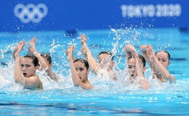 图3。花游队技术自选精彩瞬间。新华社记者 丁旭 摄