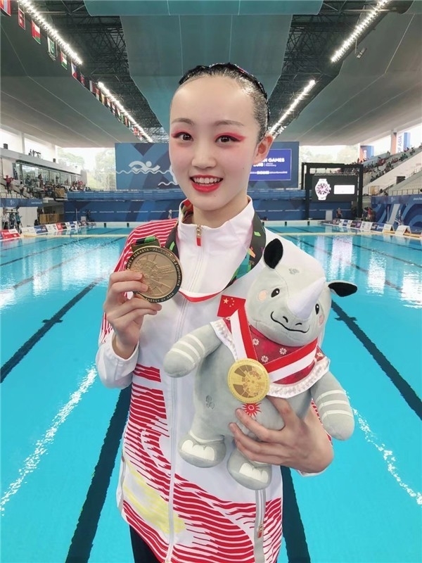 这些年,肖雁宁随国家队“南征北战”,也将多项荣誉收入囊中:2017年,在匈牙利布达佩斯,肖雁宁随花样游泳队历史性摘得首枚世锦赛金牌;2018年,又夺得雅加达亚运会花样游泳集体冠军;2019年,在韩国光州世锦赛上获得花样游泳集体技术自选项目银牌。