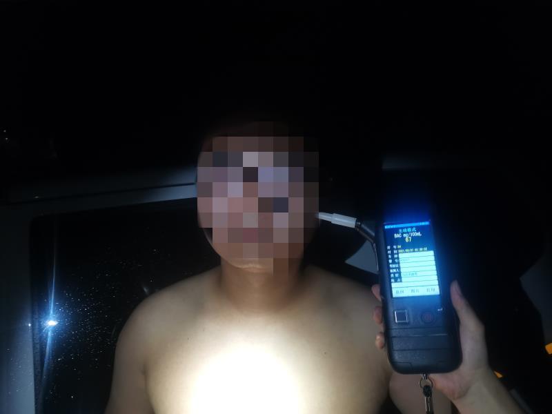 凌晨2时10分许,民警在前往张某家中的路途上发现张某正步行往牛佛派出所投案。通过与张某交谈过程中,民警发现张某身上有酒气,具有“酒驾”嫌疑。民警立即对张某进行呼气式酒精检测,结果为:67mg/100ml,属于饮酒后驾驶机动车。