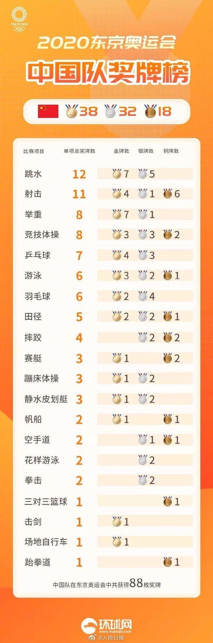 东京奥运会中国队88枚奖牌收官
