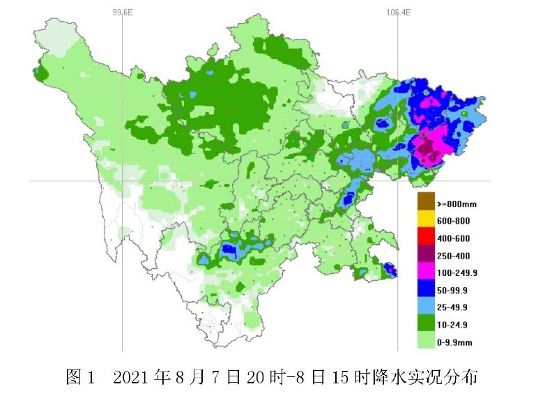 据四川省气象台,8月7日晚上到8日白天,盆地东北部出现强降雨,其中大暴雨及特大暴雨主要集中在达州市西部南部,巴中市中部,南充市东部及广安市北部的个别地方。