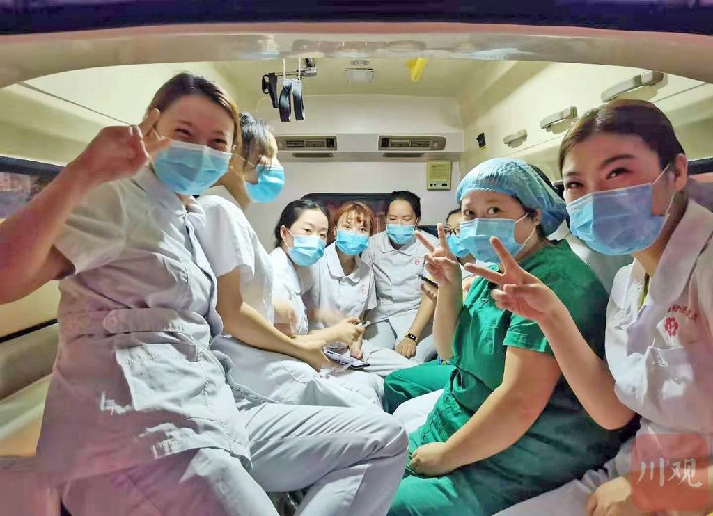 ▲7月28日晚,成都市金牛区妇幼保健院核酸采集应急队员迅速集合,奔赴成都市财贸学校高级中学(金牛区)核酸检测点开展大排查。这是医务人员满怀自信出征的留影。