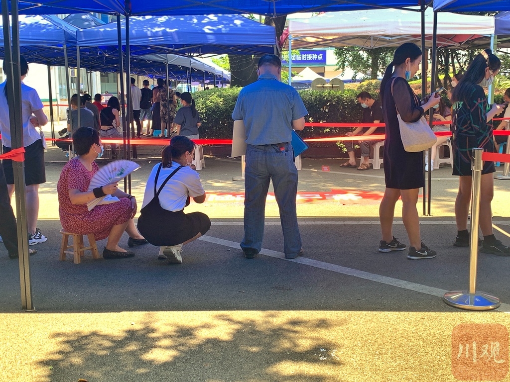 ▲8月1日,烈日下的成都市锦江区书院街街道新冠疫苗临时接种点秩序井然。