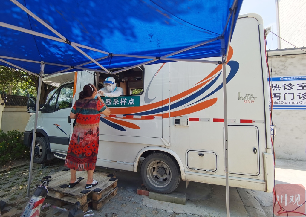 ▲7月31日,成都市龙泉驿区西河镇公立卫生院内,医护人员正在一辆房车改造的核酸采样车上开展工作。提供房车的杨先生表示,这是对高温中一线防疫人员的敬意。