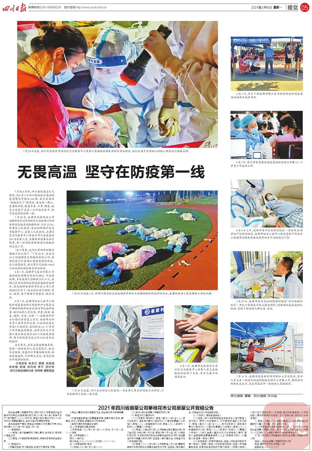 7月底8月初,四川各地高温天气持续,仅8月3日四川各地发出高温橙色预警信号超过100条。在大家感叹“快被热化了”的同时,有这样一群人,穿着防护服、戴着手套、口罩、脚套,把自己包裹严实后一头冲进热浪中,坚守在疫情防控第一线。