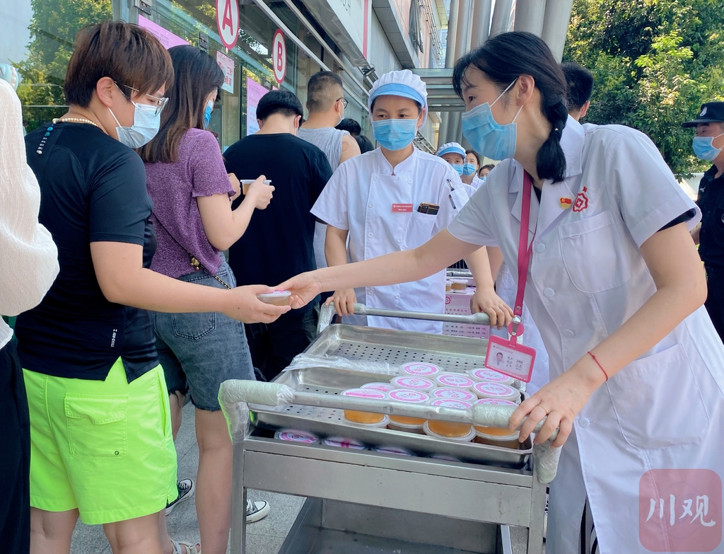 ▲7月31日,成都市妇女儿童中心医院,开展“用心抗疫关心关爱”送清凉的活动,向高温下前来接种疫苗的市民送上了爱心绿豆汤,为他们解暑热送清凉。