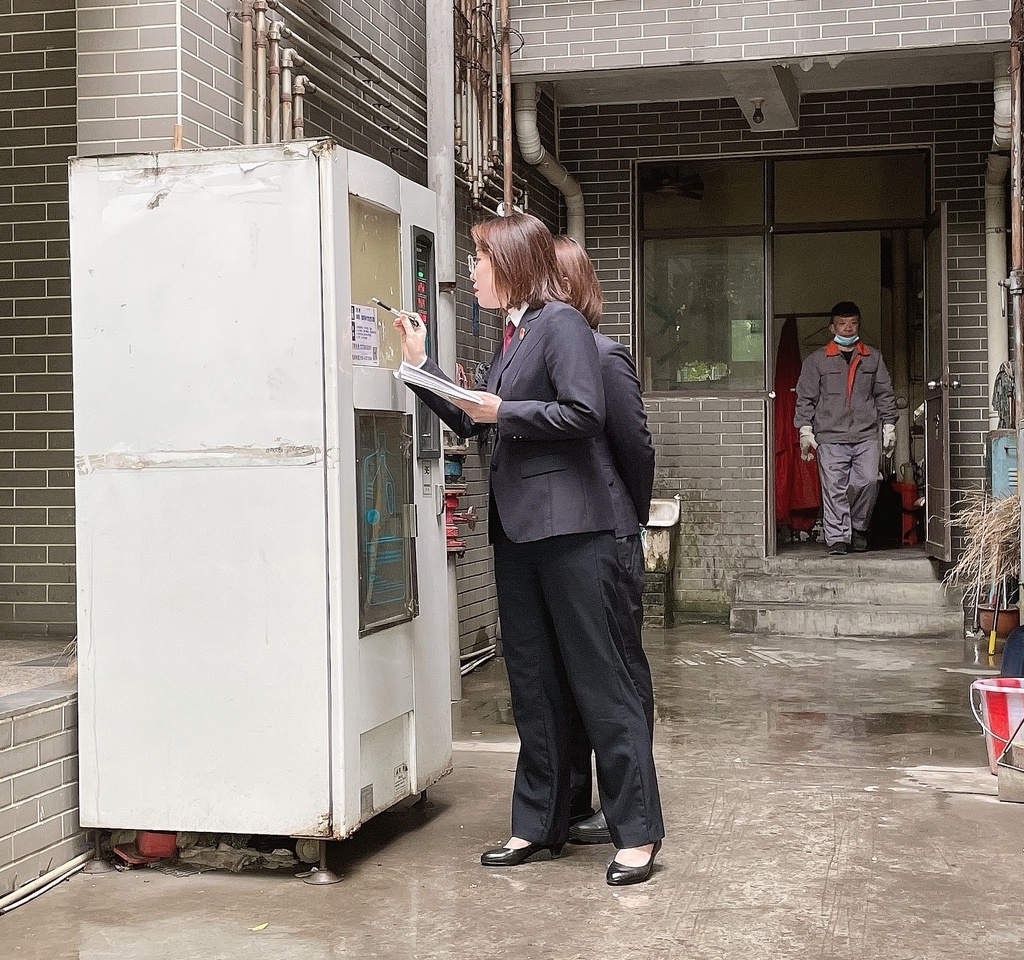 今年3月初,新都区人民检察院在走访中发现,状元府邸小区的现制现售水设备证照缺失,存在饮用水安全隐患,相关行政单位未依法履行监管职责。该院遂依法履行公益诉讼职能向相关行政机关制发了行政公益诉讼诉前检察建议。“今天,我们现场开展了‘回头看’,发现相关问题已整改到位。”沈向蓉介绍。