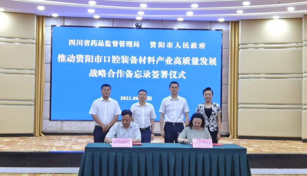 8月10日下午,省药监局同资阳市签订战略合作备忘录,计划通过延伸政务服务、加强技术指导、强化监管能力、拓展开放合作空间,推进医疗器械审评审批制度改革,促进医疗器械产业结构调整和技术创新,推动资阳市口腔装备材料产业高质量发展。