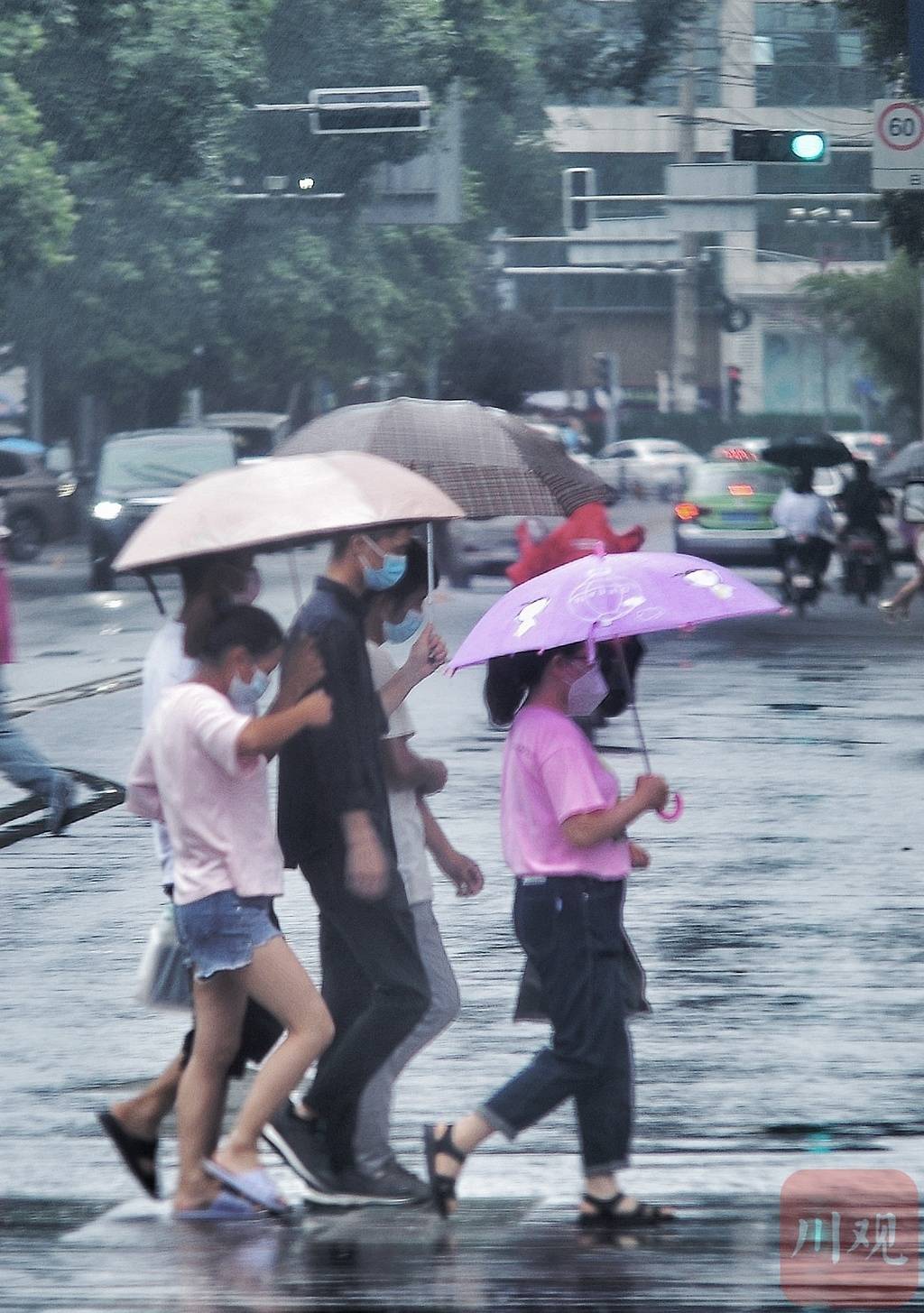 8月12日,立秋后的成都暑热逐渐减退。市区内小雨不断,在沿街水影下,一幕幕匆匆雨中人的画面,写意十足。天气预报显示,未来一周成都将有雨水陪伴,出门不要忘了带雨具。
