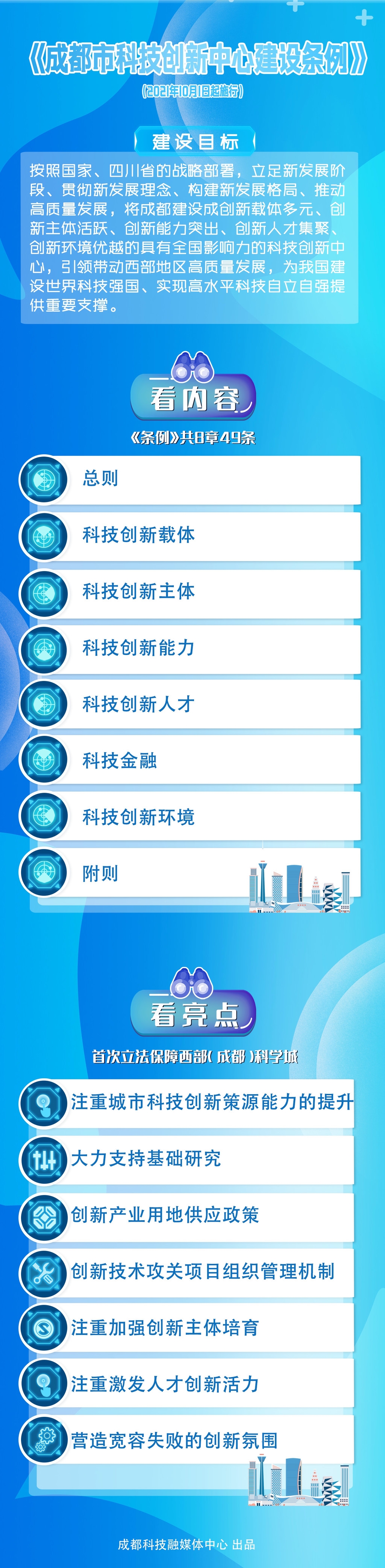 日前,《成都市科技创新中心建设条例》(以下简称《条例》)已经成都市第十七届人大常委会第二十七次会议通过、四川省第十三届人民代表大会常务委员会第二十九次会议批准,将于2021年10月1日起施行。