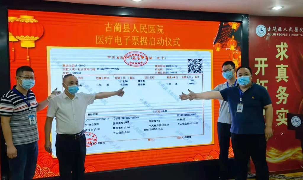 8月13日上午,在泸州市财政局、市卫健委、市医疗保障局的统一部署和协调下,古蔺县人民医院正式启用医疗收费电子票据,开出泸州第一张医疗收费电子票据。
