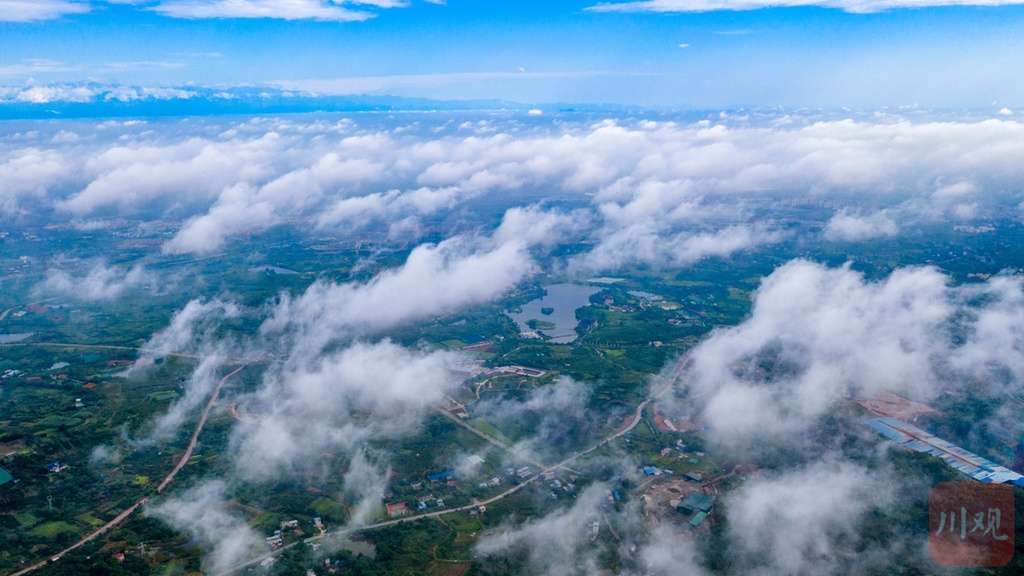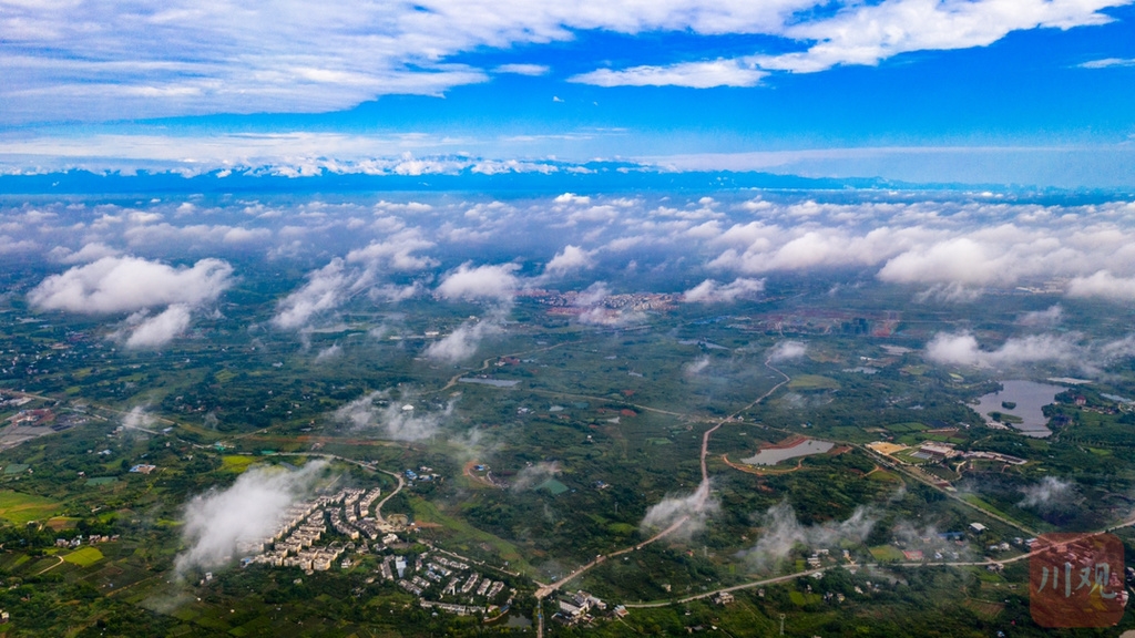8月13日清晨,雨后的成都天气晴好,青白江区福洪镇杏花村云雾缭绕,如梦似幻、分外美丽。