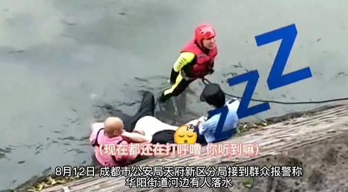 8月12日,有群众报警称成都市天府新区华阳街道府河边有人落水,成都天府新区公安通济桥派出所民辅警立即赶到现场,并迅速下水协助救人。在消防队员和热心群众的合力帮助下,成功将因醉酒落水的男子救上岸,并送医救治。落水男子全程鼾声如雷,惊呆了众人。