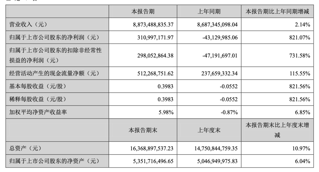 从亏损到盈利,天原股份这一年是如何做到的?从天原股份2021年半年报来看,今年上半年,公司实现营收88.73亿元,与去年上半年的86.87亿元相比增加了2.14%。