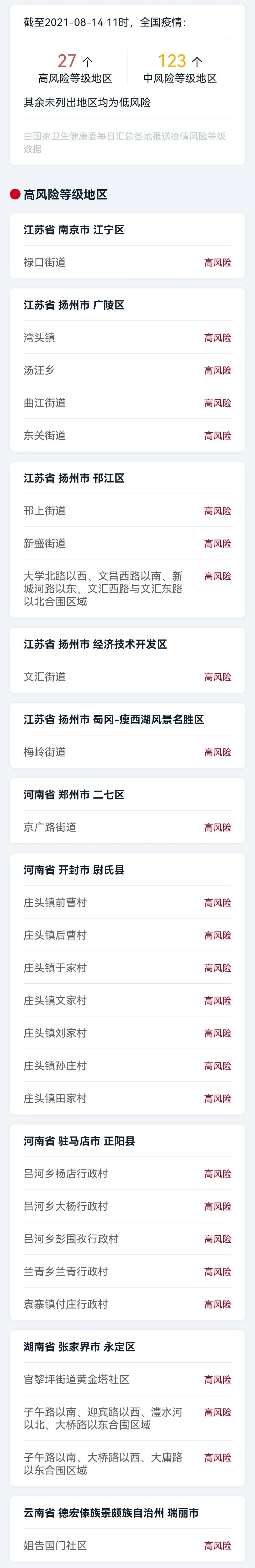 自7月23日以来,我省绵阳市、泸州市、成都市、宜宾市陆续出现省外输入新冠病例,先后有6地升为中风险地区。经过全省人民共同努力、齐心抗疫,从8月14日0时起,泸州市江阳区黄舣镇裕兴路4号厂区办公宿舍楼由中风险地区调整为低风险地区。至此,我省中风险地区全部清零,疫情防控工作恢复常态化阶段,全省生产生活秩序有序恢复正常。