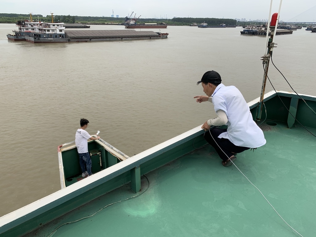 7月26日,临近中午,调试工作正式开始。此时正是一天中最热的时候,但长江航道的码头上依旧十分繁忙:江面上大小船只来来往往,码头边工人正在卸货,不远处的汽笛声和喇叭声交织在一起,不少货物从这里中转运向全国。
