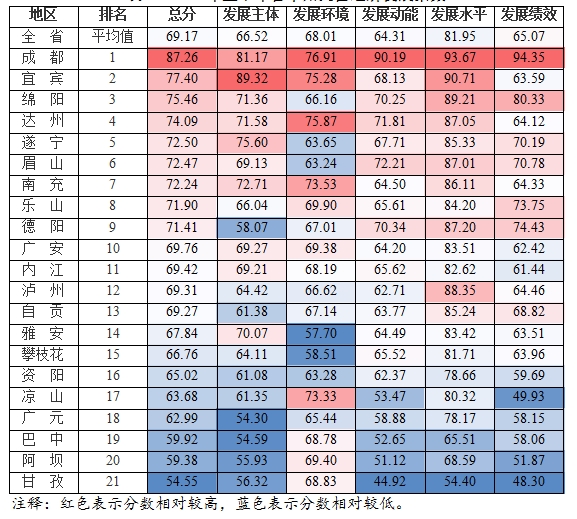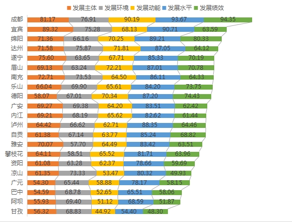 8月16日,由四川省民营办编制的“四川省民营经济发展指数”出炉。上半年,我省民营经济发展指数为69.17。成都的民营经济发展指数为87.26,排第一位,宜宾(77.40)、绵阳(75.46)列第二、三位。达州、遂宁、眉山、南充、乐山、德阳、广安、内江、泸州、自贡的民营经济发展指数高于全省水平。