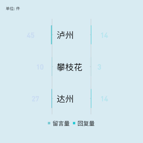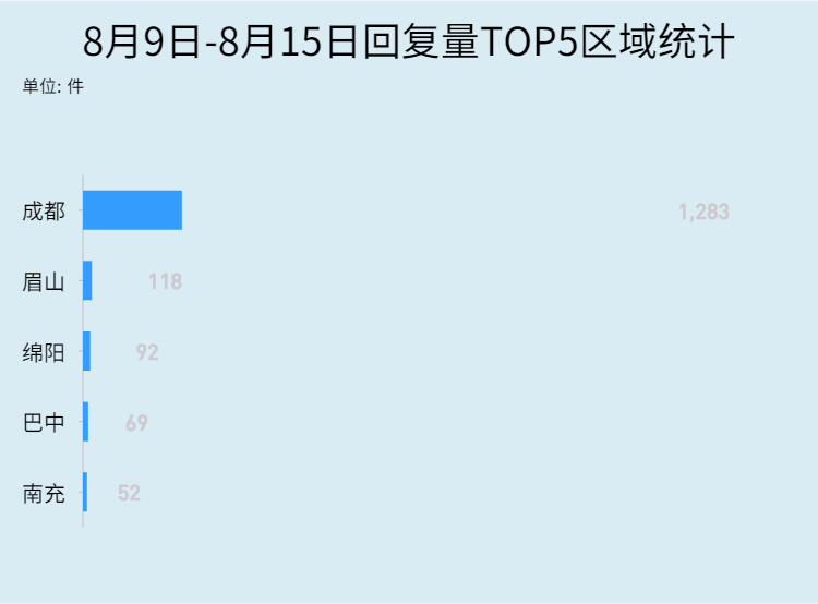 上周,全川回复量排名前五的区域为