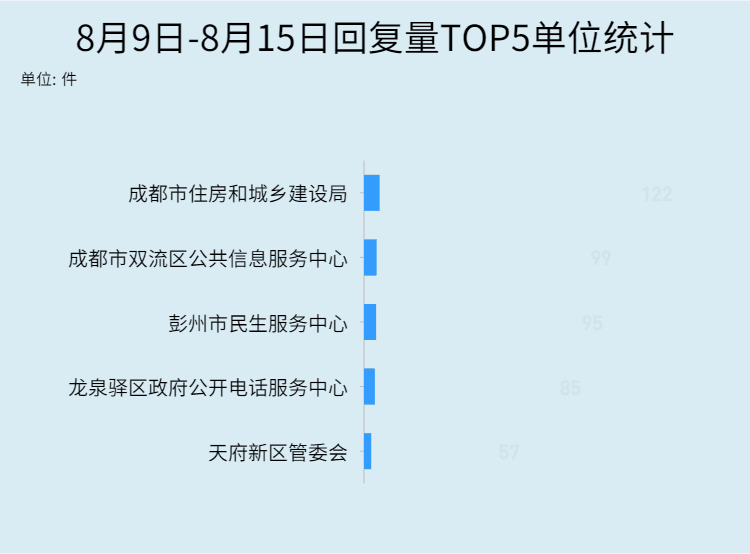 从具体接件转办单位来看,全川转办回复量排名上前五的单位分别为: