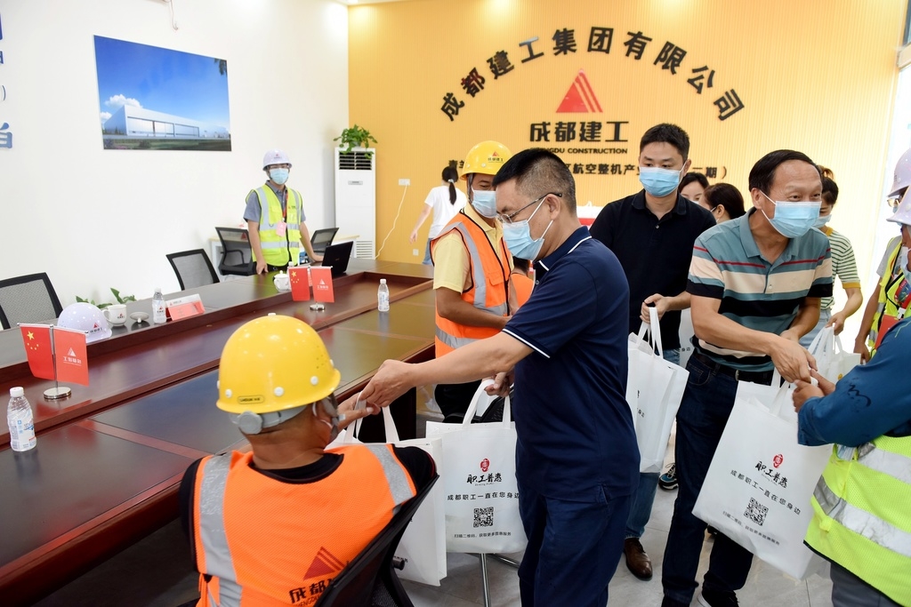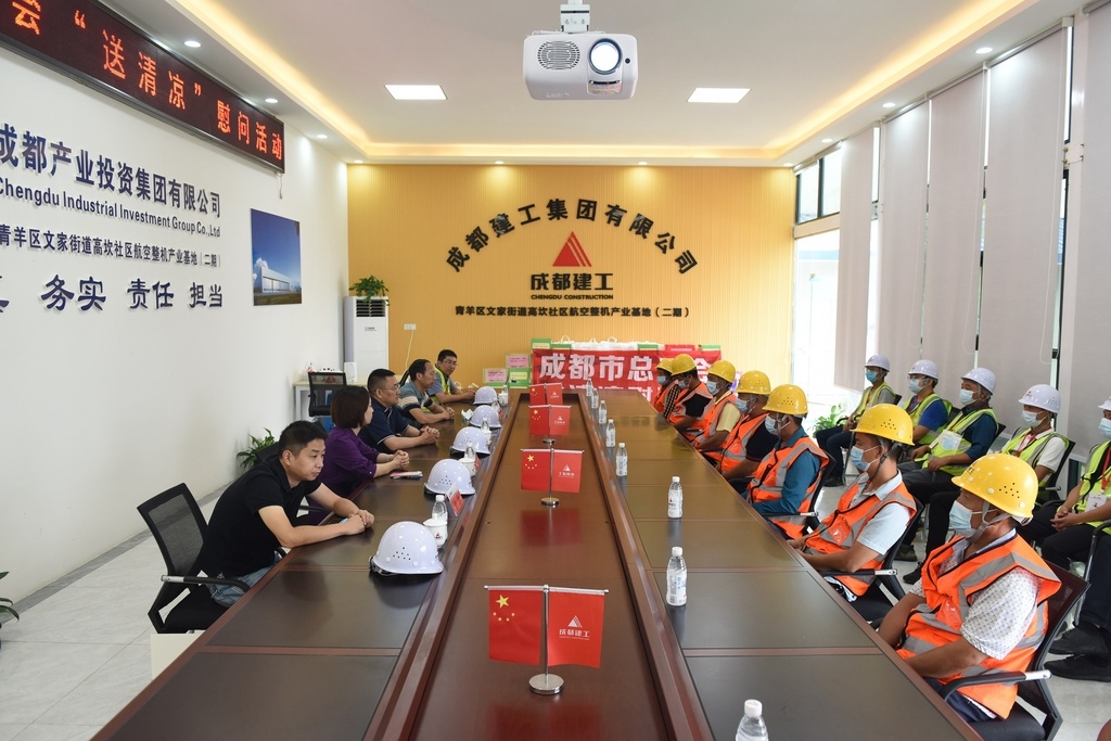 8月17日记者从成都市总工会获悉,成都市总工会慰问小分队一行日前来到成都重点建设项目成都兴城集团下属成都建工集团七公司承建的成都市重点工程建设项目——青羊区文家街道高坎社区航空整机产业基地(二期)项目工地开展“送清凉”慰问活动,看望慰问奋战在高温中的一线职工(农民工),给他们送去党委、政府和工会“娘家人”的关心和关爱。