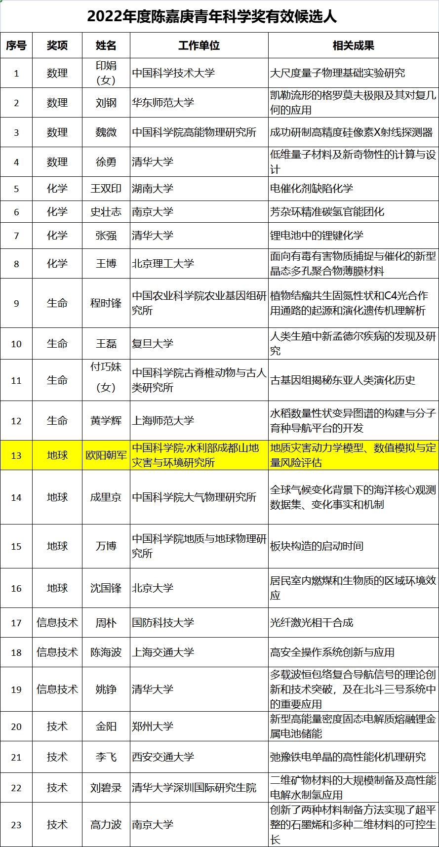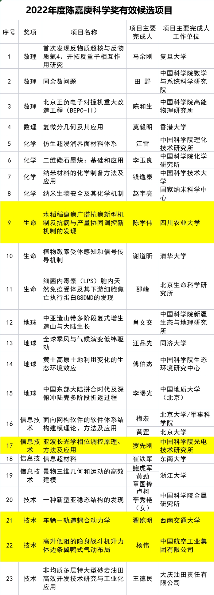 8月16日,陈嘉庚科学奖基金会公布了2022年度陈嘉庚科学奖有效候选项目和陈嘉庚青年科学奖有效候选人名单。