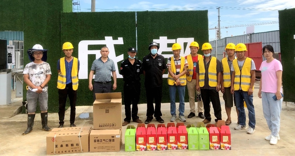 同安街道总工会开展“工会同行携手抗疫—夏季送清凉慰问”活动,慰问一线防疫人员、电力维保人员等一线职工共计2900余人,为他们送去藿香正气液、凉茶、水果等防暑降温物品