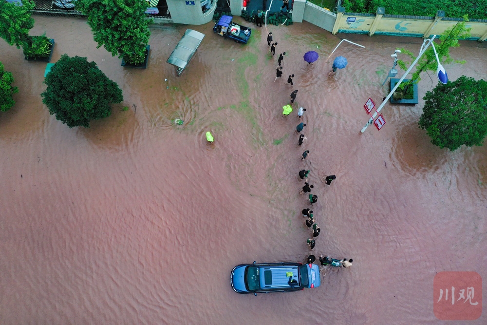 8月18日,雅安市普降中到大雨,雅安境内青衣江水位上涨,雨城区北外环多处路段积水。