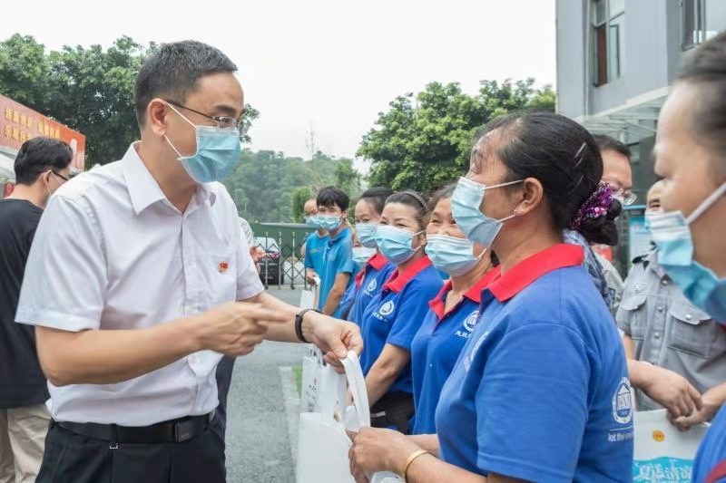 8月17日,省总工会慰问组一行赴成都市高新区桂溪街道开展“我为群众办实事”关爱户外劳动者“送清凉”活动,慰问奋战在高温一线的环卫工人、外卖配送员等户外劳动者,为他们送上党委、政府和工会“娘家人”的关心关爱。