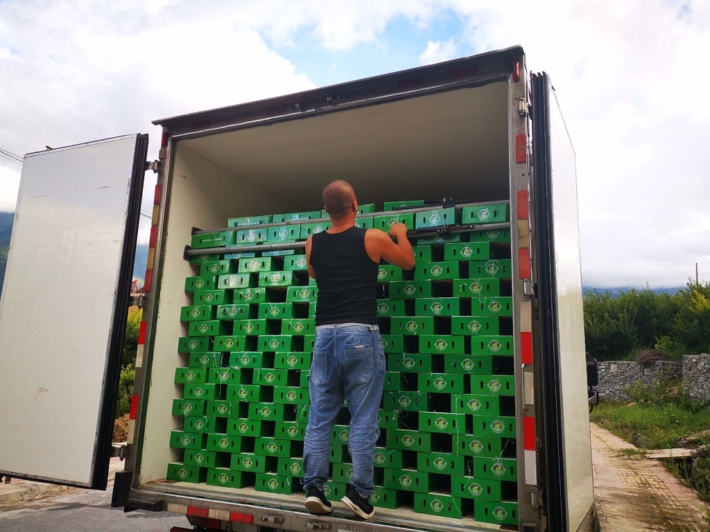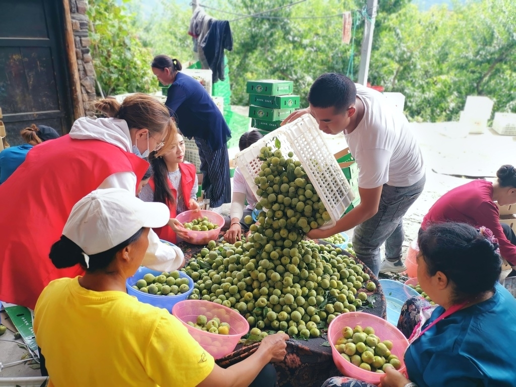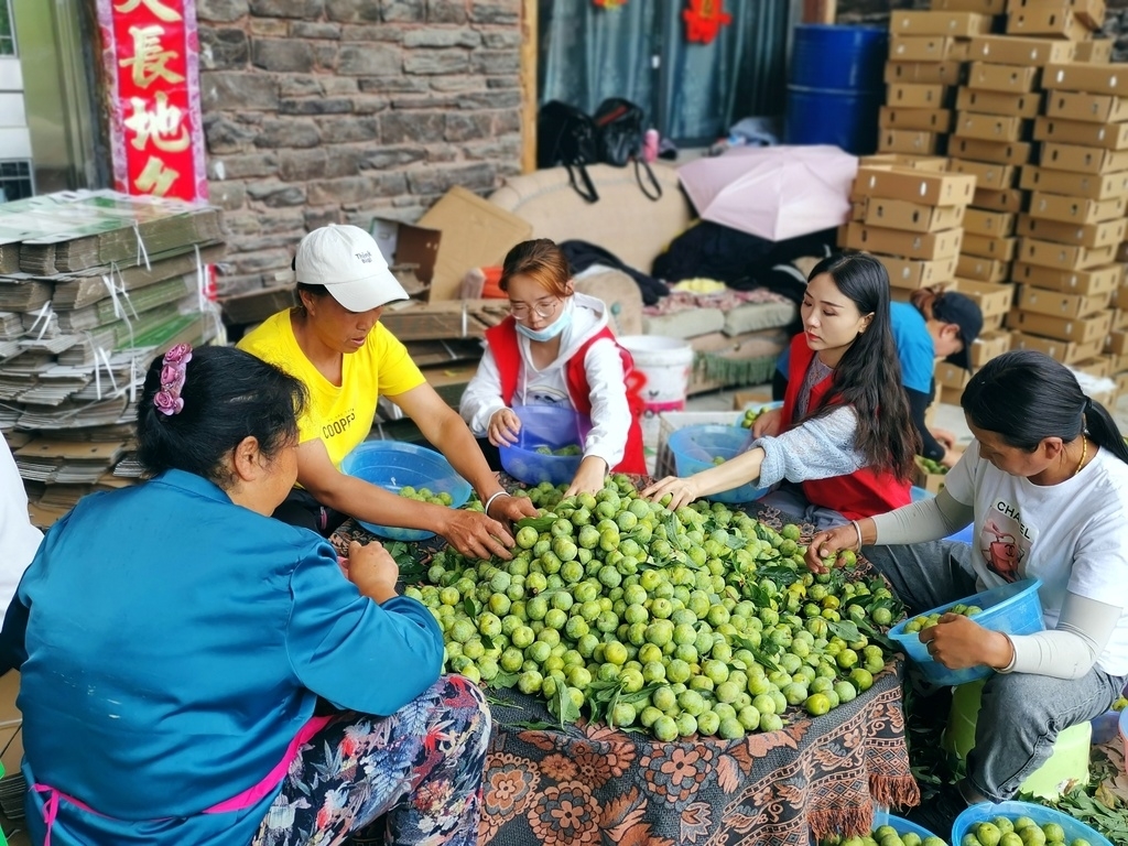在官马功家的园坝里,记者看到现场一片繁忙,茂县电商公司工作人员与果农们分工合作,忙着给刚收购的茂县李分类、挑选、打包、装箱销往全国各地。
