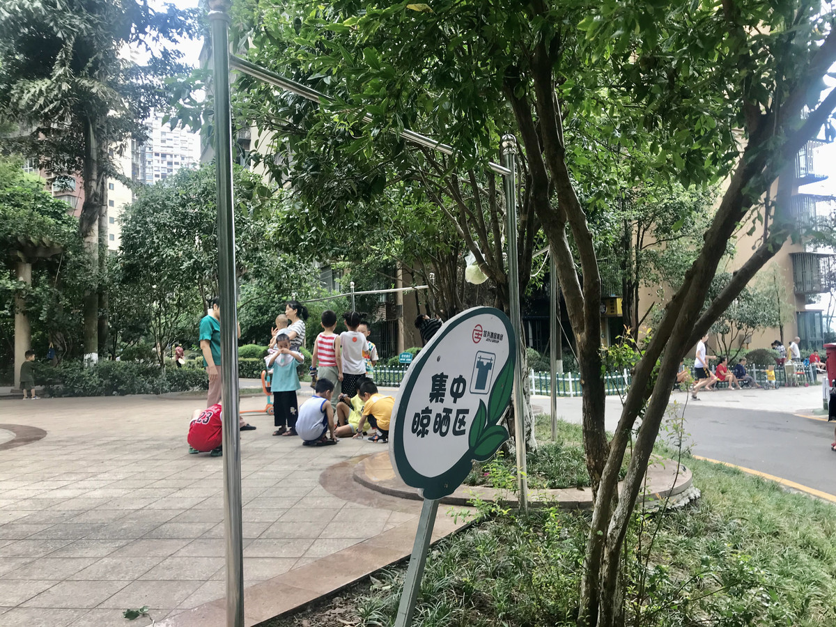 8月17日,阳光明媚。在泸州市江阳区维多利亚领秀小区集中晾晒区,居民刘女士将洗好的被子甩了甩,挂在不锈钢晾衣架上。“之前有人在‘民情院坝’上反映没得地方晾大件衣物,小区就专门在广场上安装了7个这样的晾衣架。大件衣物有地方晾了,冬天出太阳的时候,每个晾衣架都是满的,全是五颜六色的被子。”