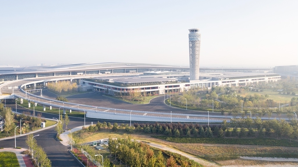 据了解,青岛胶东国际机场是国内首个原创设计的五指廊构型的枢纽机场,以富有张力的连续曲面将极具向心力的五个指廊与大厅融为整体,实现大集中与单元式的合理平衡。创新的构型充分发挥跑道间距2184米的距离优势,以48万平米的航站楼承担了近机位76个(总机位数184个)。