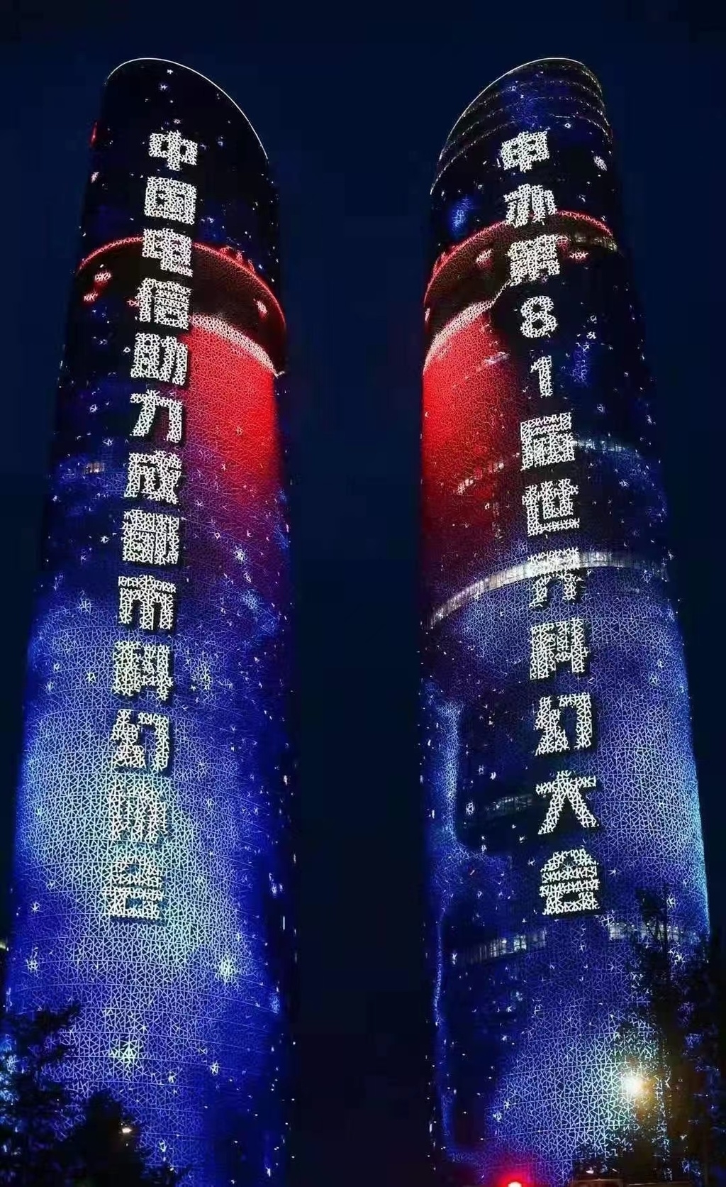 以“科幻+”赋能新场景、新消费、新体验,打造科幻特色场景,以科幻之光点亮天府双塔,以科幻产业赋能城市未来。 在接下来的一个月时间 ,天府双塔将持续亮灯,为成都申幻助力。