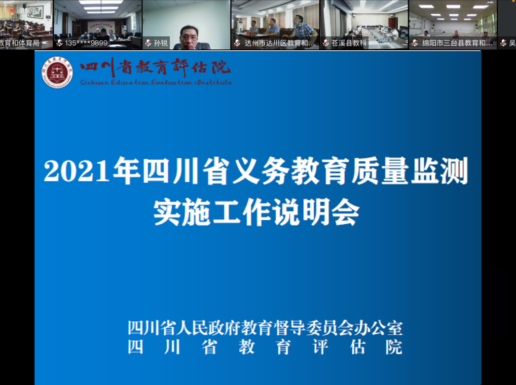 为确保监测实施工作的顺利推进,相关负责人对2021年四川省义务教育质量监测工作要求和时间节点进行了在线指导,重点对监测背景、监测内容、监测对象、组织实施以及重要时间节点和任务进行了详细地说明。会后,省教育评估院建立了2021年义务教育质量监测工作群,对样本县关心的问题做了详细解答,为后续推进监测工作实施奠定了基础。