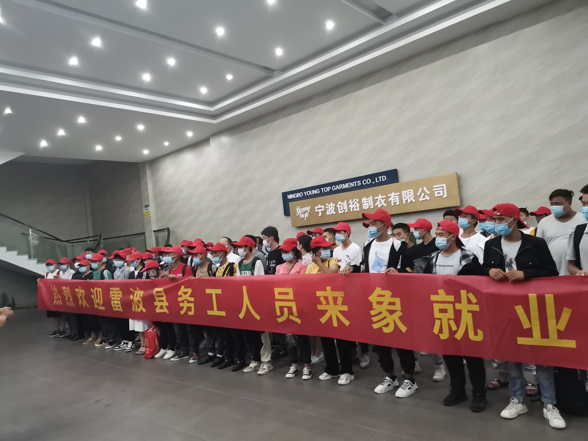 根据象山县人社局提供的就业岗位信息,雷波县召集全县21个乡镇召开动员会加强宣传发动,并根据务工人员的选择,初步确定了其中5家企业作为本次务工人员的就业安置企业。随后,雷波县免费为报名参加专项劳务输出人员进行核酸检测、体检和接种疫苗,集中用餐、住宿,统一包车,同架飞机出行,全程佩戴口罩。