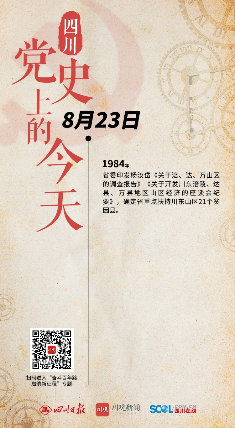 1984年 省委印发杨汝岱《关于涪、达、万山区的调查报告》《关于开发川东涪陵、达县、万县地区山区经济的座谈会纪要》,确定省重点扶持川东山区21个贫困县。