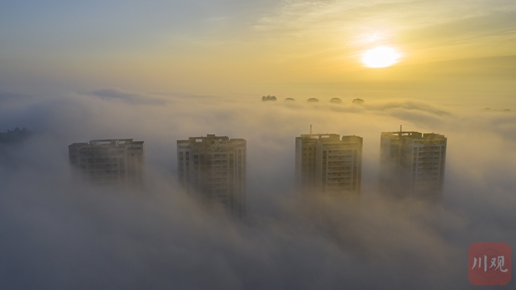 处暑时节 什邡低空云海梦幻如海市蜃楼