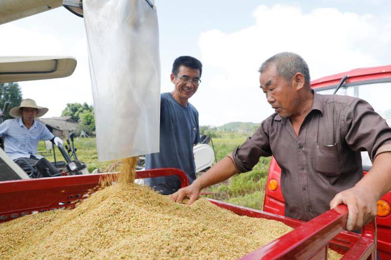 “我种植了4亩水稻,亩产量在800斤以上。以前4个人要两天才能收割完,现在不到半小时就全部收完了,省时省力,价格也划算。”张荣快笑着说,这些年村里有了农机专合社,机收水稻很受欢迎,只要到了收割季节,顺庆区农业农村局和村委会都会主动帮忙协调机器,实施水稻生产全程服务,并组织农技员下村指导机收作业,帮助农户减劳力、省费用,保证农户的水稻颗粒归仓。