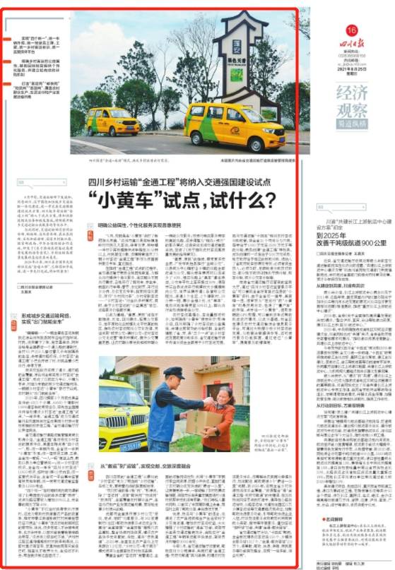 四川推进交邮融合,乡村运输“小黄车”附搭小件快运,打通乡村物流“最后一公里”。