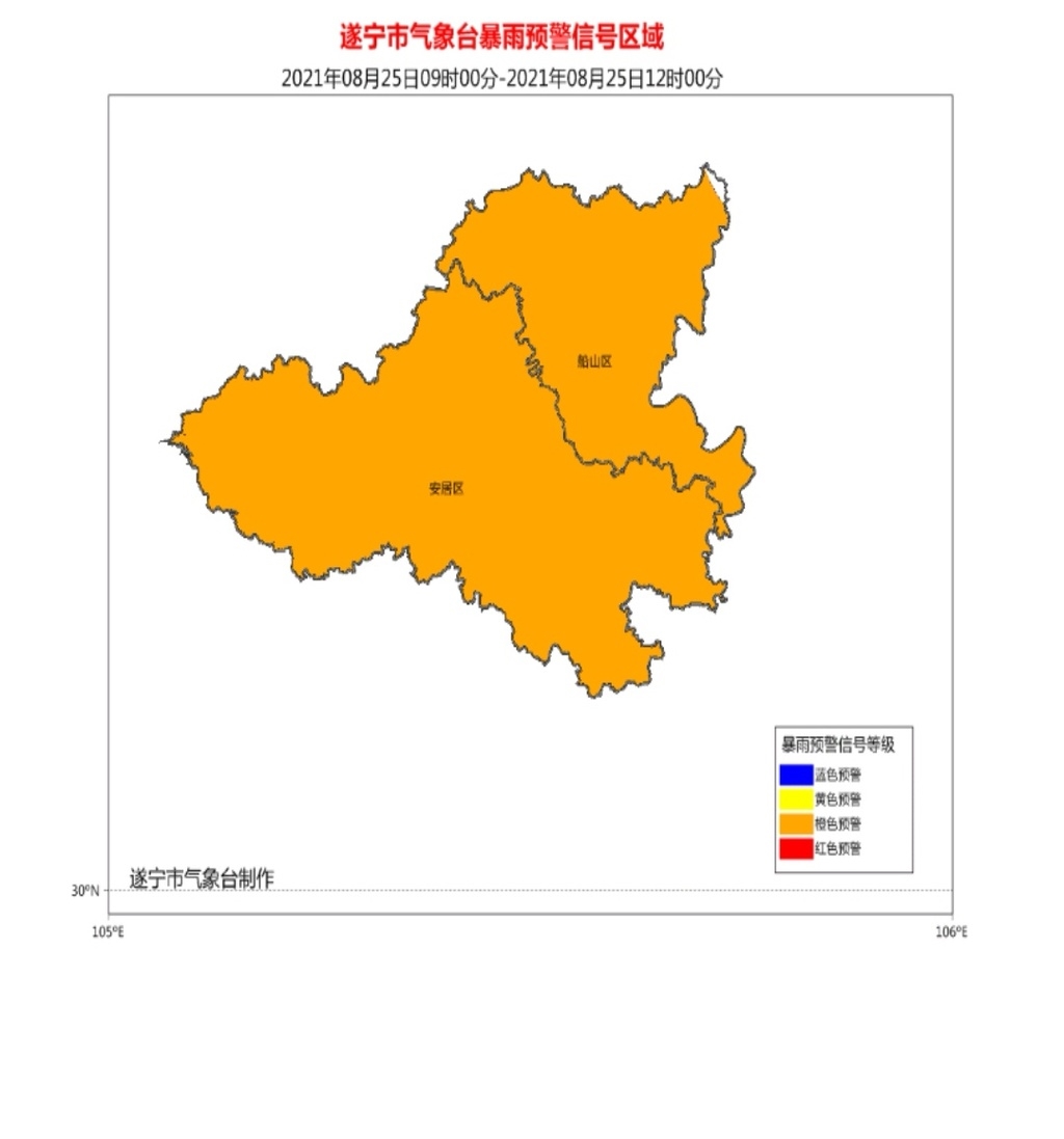 8月25日9时00分,遂宁市气象台发布第38号暴雨橙色预警信号: