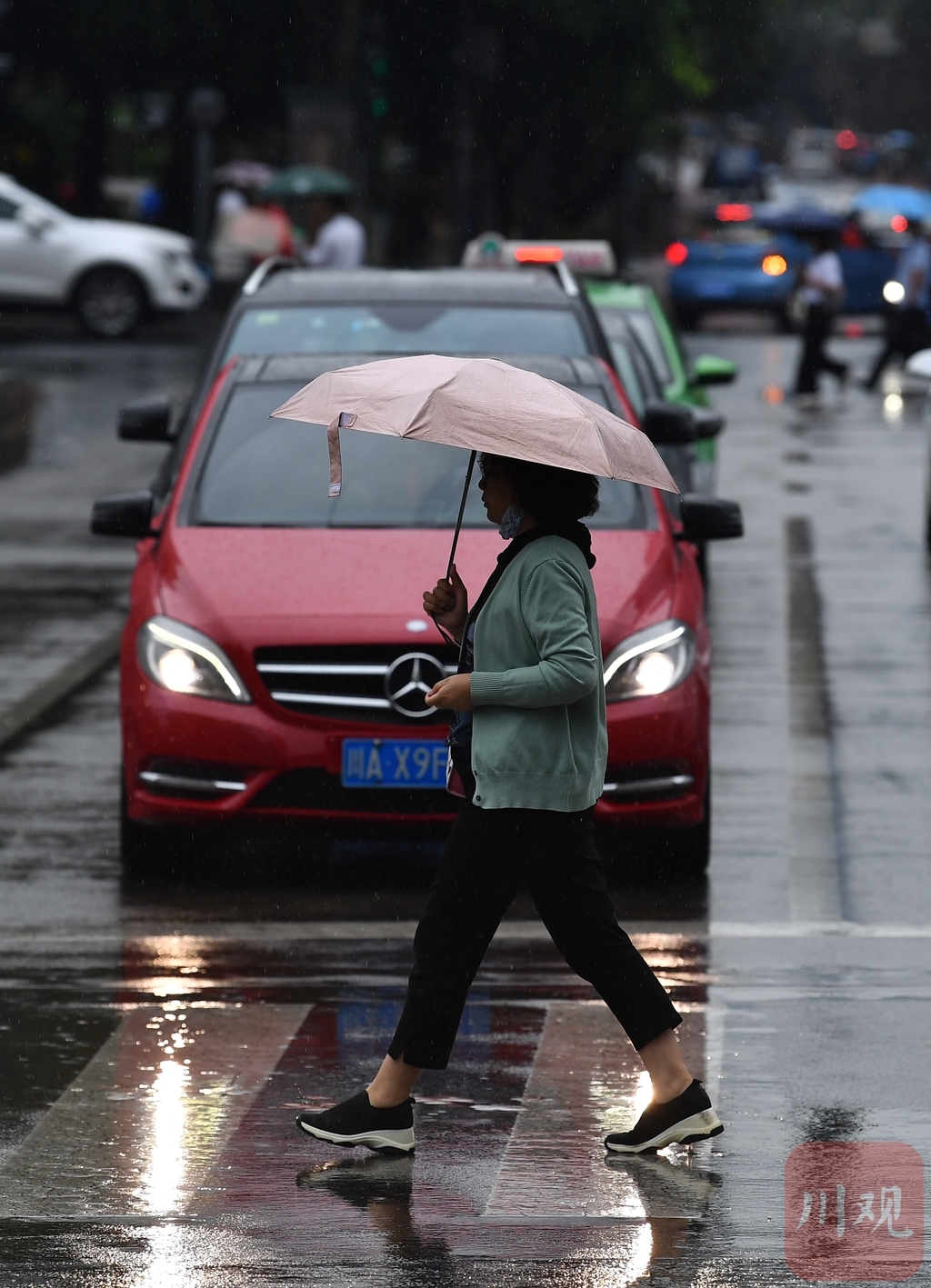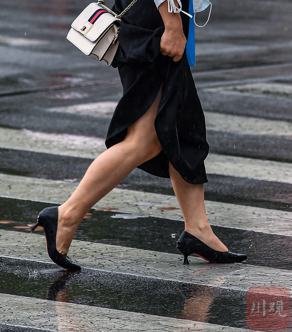 雨中市民出行。
