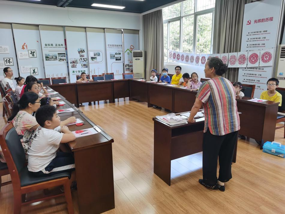 8月23日下午,金牛区金科苑社区二楼活动室热闹非凡,20名6—10岁的孩子们在剪纸达人熊玉华老师的带领下了解传统剪纸艺术历史并进行了现场体验。