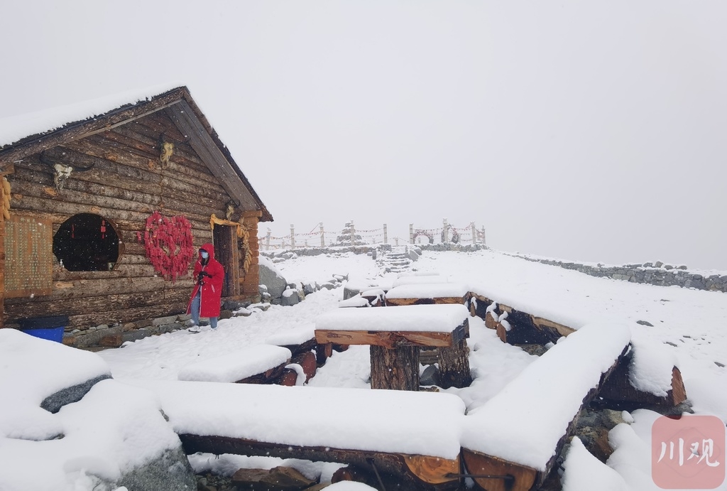 8月25日,达古冰川景区下了今秋第一场雪,山巅被茫茫大雪覆盖,乘坐全球海拔最高的客运缆车前往雪山之巅的途中,会看见云海汹涌翻滚,宛如穿梭在仙境之中。层层云雾,在雪山冰川之间流动翻腾,与山峰缠绵,与白云嬉戏。