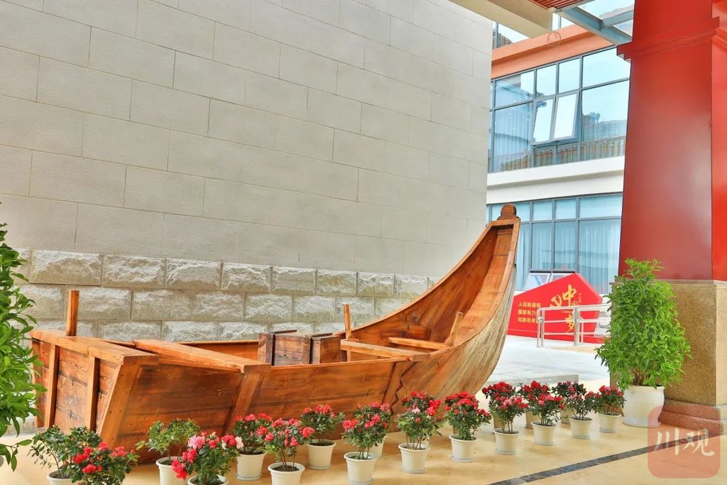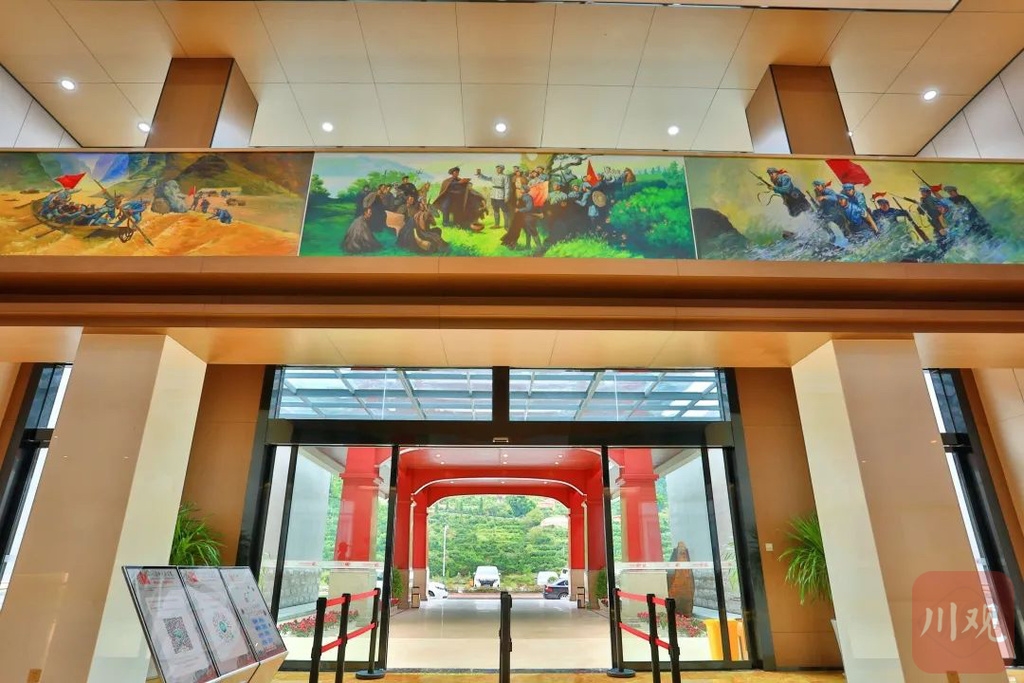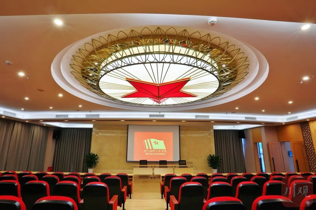 走进教学楼,强渡大渡河汉白玉浮雕、翘首木船、中国共产党人的精神谱系文化墙等依次排布,红色文化元素融入各式特色设计之中。教学楼还配备了无纸化远程教室、报告大厅、红色书屋等一系列配套设施,为参训学员打造了一个兼具“高配置”和浓郁红色文化氛围浓厚的教学基地。