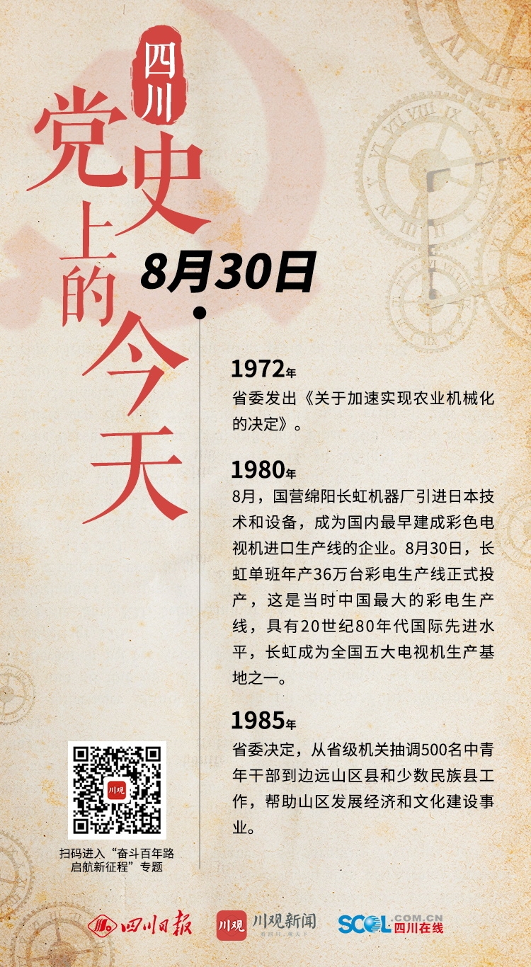 1980年 8月,国营绵阳长虹机器厂引进日本技术和设备,成为国内最早建成彩色电视机进口生产线的企业。8月30日,长虹单班年产36万台彩电生产线正式投产,这是当时中国最大的彩电生产线,具有20世纪80年代国际先进水平,长虹成为全国五大电视机生产基地之一。