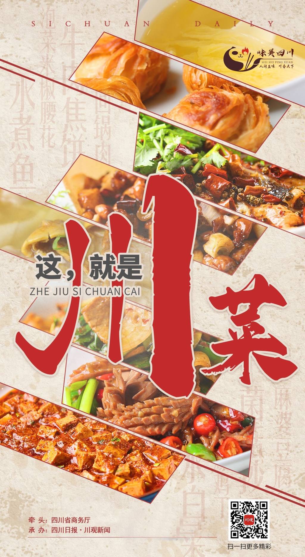 今年3月,四川省商务厅在全国率先启动了2021“味美四川”川派餐饮汇“天府名菜”评选活动并举行启动仪式。就在本周三,精心筹备了数月之久的100道“天府名菜”大型网络投票活动将正式启动,为全球喜爱川菜的美食者们奉上一场视觉与味觉共赏的盛宴。