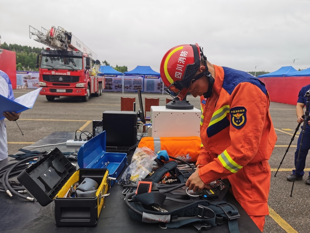 作为2021年度四川技能大赛子活动之一,此次比赛设置了正压式消防空气呼吸器故障诊断及排除、双轮异向切割锯(机动)组装及应用和登高平台消防车故障排除及操作等课程。