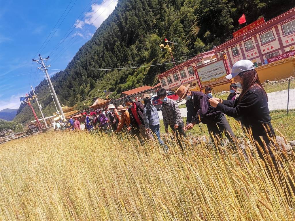 在距离县城170余公里的沙冲乡,农技员正带着农户在青稞地里查看穗子的成熟度,给大家估算收割时间和产量。“今年通过种质检测和科学播种,黑青稞长势比去年好。现在青稞已经包浆,颗粒饱满,下周就可以收割了,预计亩产能达320斤,同比增长20%。”
