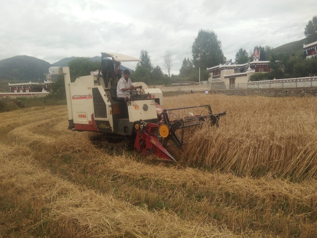 春种一粒粟,秋收万颗子。转眼已到秋天,一片片黄灿灿的麦穗和青稞低下了沉沉的“脑袋”。8月31日,道孚县格西乡若珠村多吉一家人起了个大早,趁着太阳出来前开着联合收割机、拖拉机到了麦地里收割。“轰隆隆”的机器声、农户的欢笑声合奏起今年的丰收之歌。