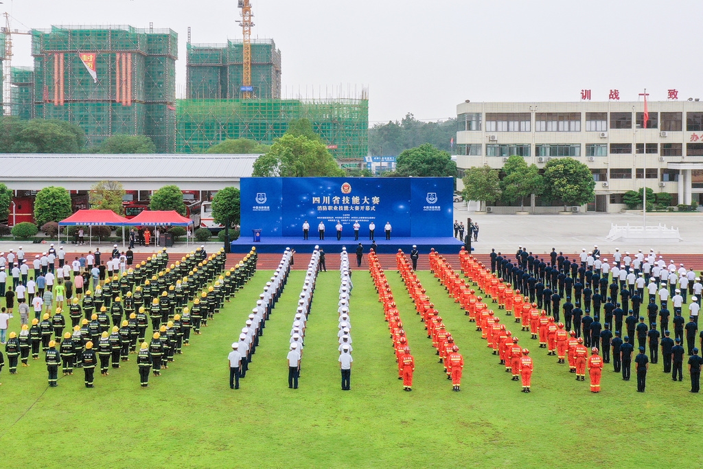 8月31日,由省消防救援总队、省应急管理厅、省人社厅、省总工会、共青团省委联合举办的“四川技能大赛—消防职业技能大赛”在位于成都市温江区的训练与战勤保障支队正式开幕。
