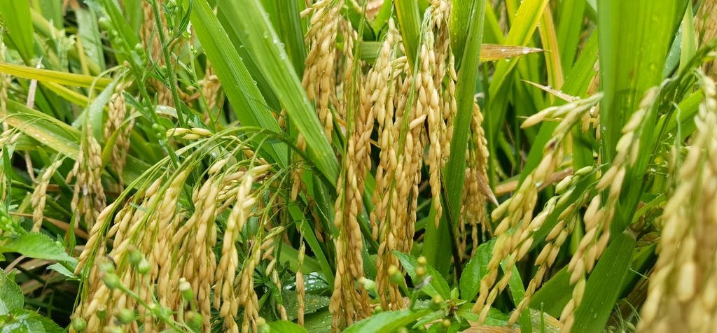 31日下午,一场短暂的阵雨过后,联丰村稻田里百亩“品香优秱珍”的金黄色更加亮眼。